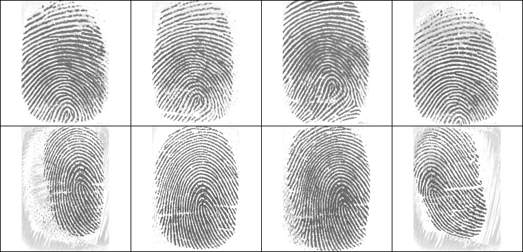 - the presence of the fingerprint cores and deltas is not guaranteed since no attention was paid on checking the correct finger centering.